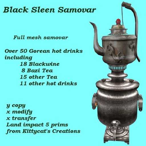 This lovely samovar has over 50 Gorean drinks in its' menu.